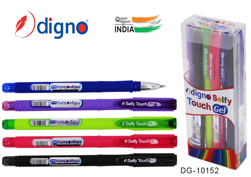 Гелевая ручка: DIGNO "TOUCH"; цветной яркий корпус soft, 0,7 mm, серебристый наконечник, цвет чернил синий.