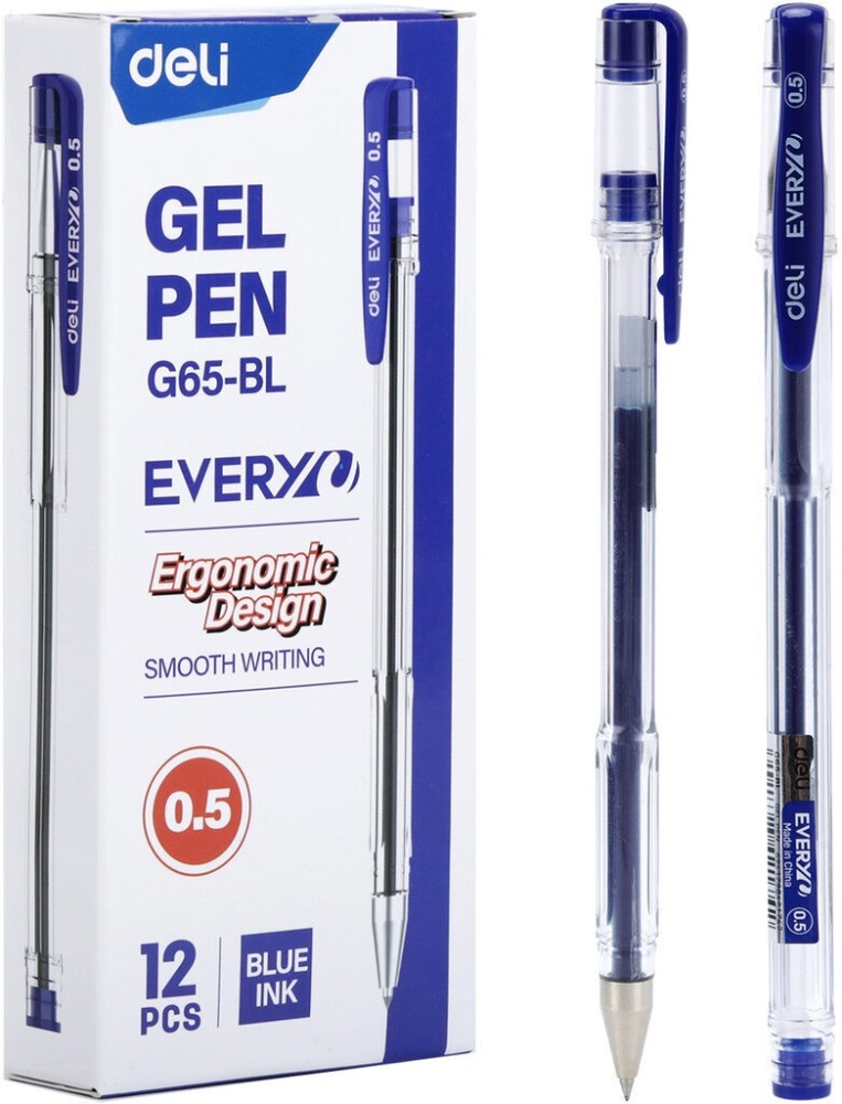 Ручка гелевая. Deli EveryU корп.прозрачный d=0.5мм чернила син.