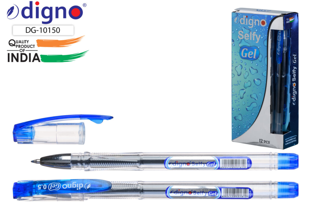 Ручка гелевая. DIGNO SELFY. Прозр.корпус, цв.клип. 0,5 мм. Синяя