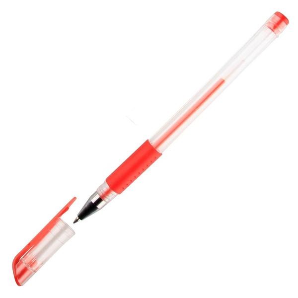Ручка гелевая "Economy" красная 0.5.129мм корпус прозрачный рез.грип
