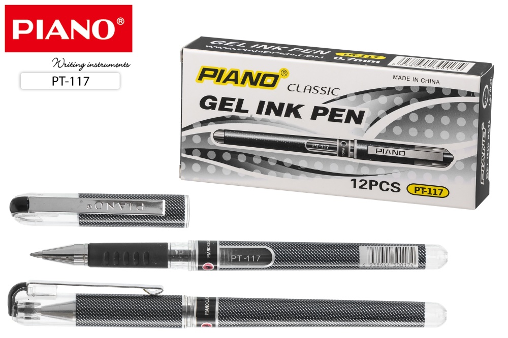 Ручка гелевая. PIANO CLASSIC. Чёрный корпус, пиш.узел 0,7 мм. Чёрная