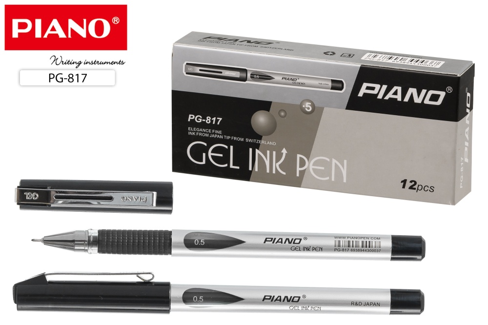Ручка гелевая. PIANO. Серебристый корпус, цв.колпачок. Игольчатый наконечн. 0,5 мм. Чёрная