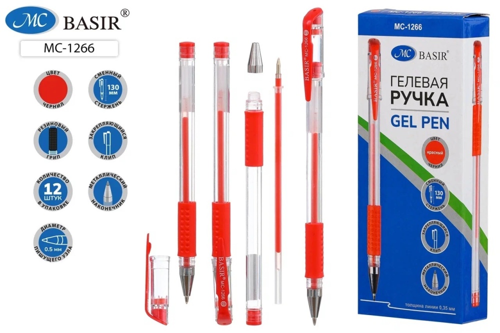 Ручка гелевая. Прозр.корпус. 0,5 mm. Резин.держатель. КРАСНАЯ