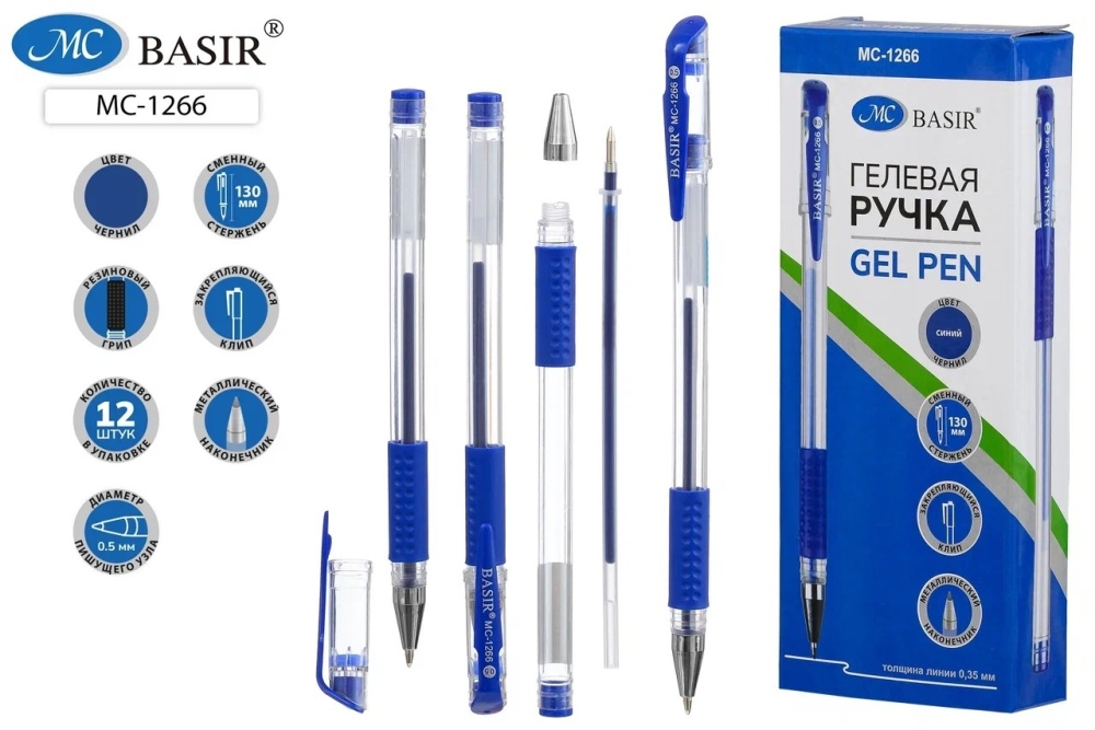 Ручка гелевая. Прозр.корпус. 0,5 mm. Резин.держатель. СИНЯЯ