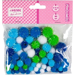 Набор помпонов для творчества "deVENTE. DIY" 80 шт, с блестками ассорти размеров и цветов (10 мм - 40 шт, 13 мм - 21 шт, 20 мм - 10 шт, 25 мм - 9 шт) в пластиковом пакете с блистерным подвесом, голубые цвета ассорти