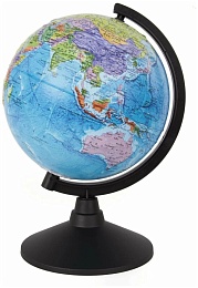 Глобус позволит ознакомиться с политической картой мира. Подходит для использования в детских садах и школах. Поможет узнать об организационно-правовом (политическом) укладе территорий, показывает сухопутные и морские границы государств и их столицы.