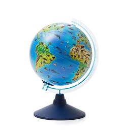 Globen Глобус Зоогеографический детский батарейки 21 см с подсветкой это отличный подарок ребенку. Благодаря ему ваши дети узнают не только об устройстве планеты, на которой мы живем, но и о наших соседях-животных. Ареалы обитания разных зверей и птиц нанесены на глобус, позволяя узнать, кто живет в российской тайге, африканской саванне и глубокой Марианской впадине. Эти знания полезны для расширения кругозора, повышения интереса к географии, биологии и изучению окружающего мира. Незаметно для себя ребенок запомнит очертания и названия континентов, морей и океанов. А расспрашивая или самостоятельно выискивая информацию о животных, он узнает и про географические широты, особенности климата и рельефа в разных местах планеты. И все это произойдет без зубрежки и страданий, естественно и из природного детского любопытства.