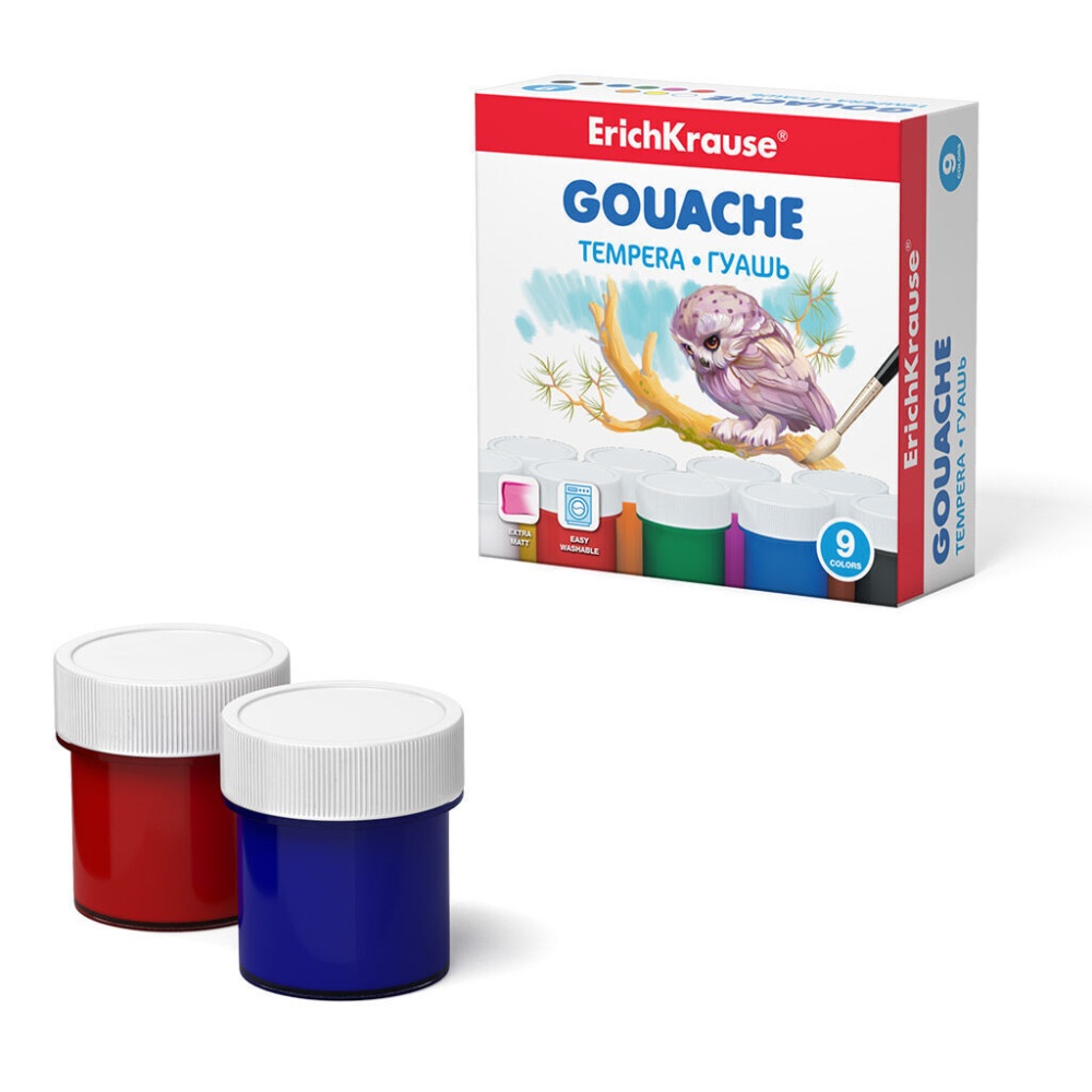 Гуашь ErichKrause 9 цветов по 20 мл (в коробке 9 шт)