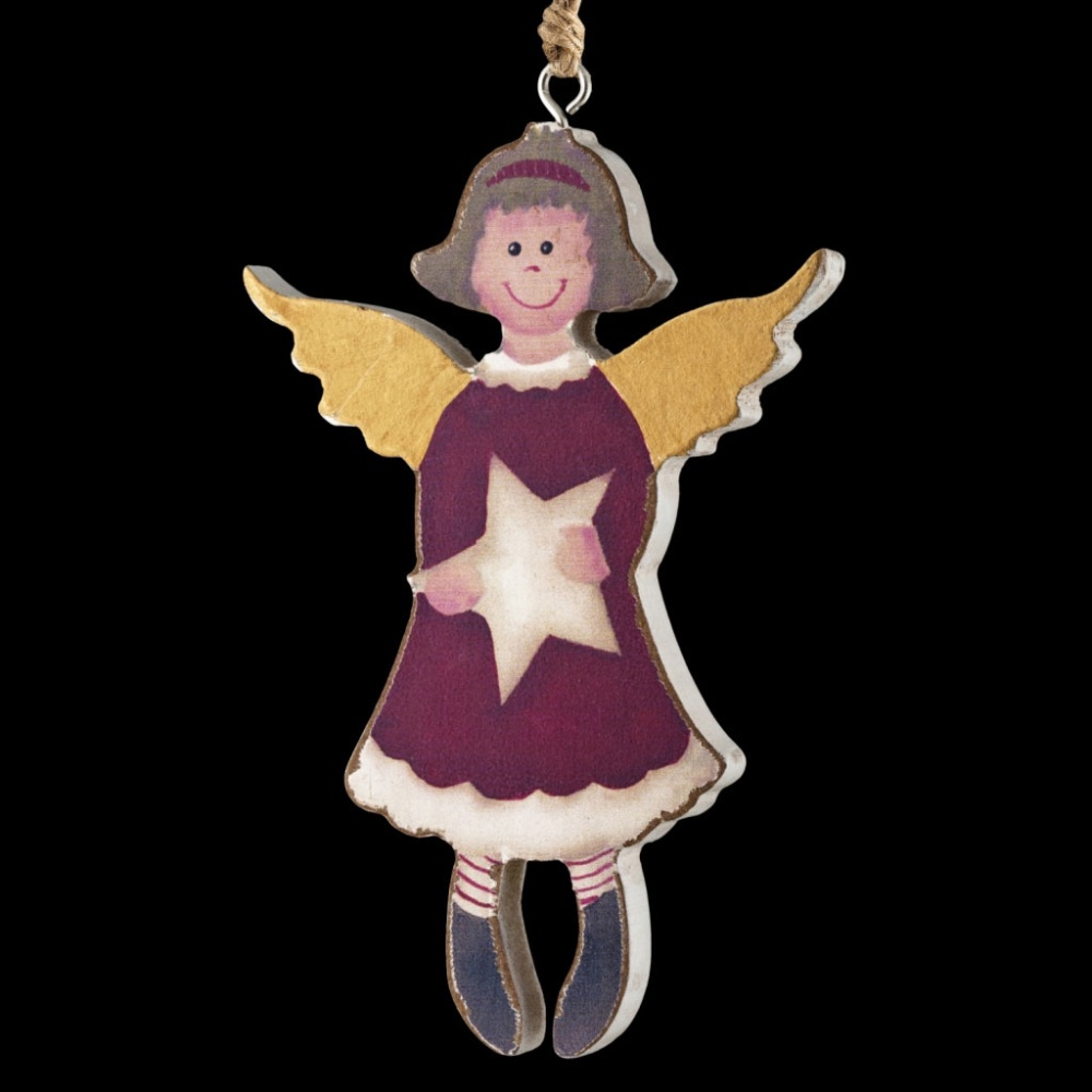 Украшения из древесины - тренд в области праздничного декора. Легкие и безопасные в использовании, на елке они смотрятся очень необычно. Отличный вариант для семьи с маленьким ребенком, а также детских учреждений. Ангел с золотыми крылышками выполнен с эффектом состаривания. Обратная сторона украшения покрыта белой краской. Это позволяет использовать оборот для поздравлений или рисунков, что создает отличную возможность для детского творчества. Групповая упаковка предназначена только для безопасной транспортировки и хранения.