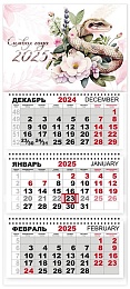Календарь Трио 310*690мм на 2025г. СГ Серая змея с розовыми цветами на белом