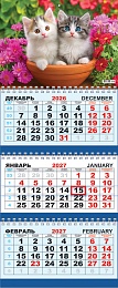 Календарь квартальный на 2027 год "Кошки. Пушистые братишки", 295х730мм