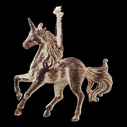 Единорог выполнен в оригинальной технике, придающей сходство с игрушкой, выточенной из дерева. Изделие частично покрыто белыми блестками. Техническая упаковка - полиэтиленовый пакет, только для безопасной транспортировки и хранения.
