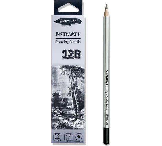 Набор художественных чернографитных карандашей, твердость 12В, грифель 4 мм. Высокое качество рисования, эскизов, набросков, скетчей, графики, черчения. Специальная проклейка грифеля (корпус с грифелем составляет одно целое) предотвращает его поломки при падении и затачивании. Однородный грифель графитового карандаша не царапает бумагу, оставляет четкие яркие линии, не крошится, затачивается до нужной остроты. Шестигранный корпус легкий, удобно лежит в руке, пальцы не скользят можно работать без усталости. Корпус из высококачественной древесины ровно и аккуратно затачивается стандартными точилками, не меняет упругость, не трескается. Длина корпуса 176мм. Матовая бархатистая лакированная поверхность, серебристый корпус, запаянный верх. Карандаш простой чернографитовый мягкости, жесткости 12B заточенный. 12 штук в наборе. Профессиональные графитные карандаши подойдут для студентов вузов, инженеров, художников, архитекторов, чертежников, дизайнеров, художественных студий, школ, колледжей, школьников.