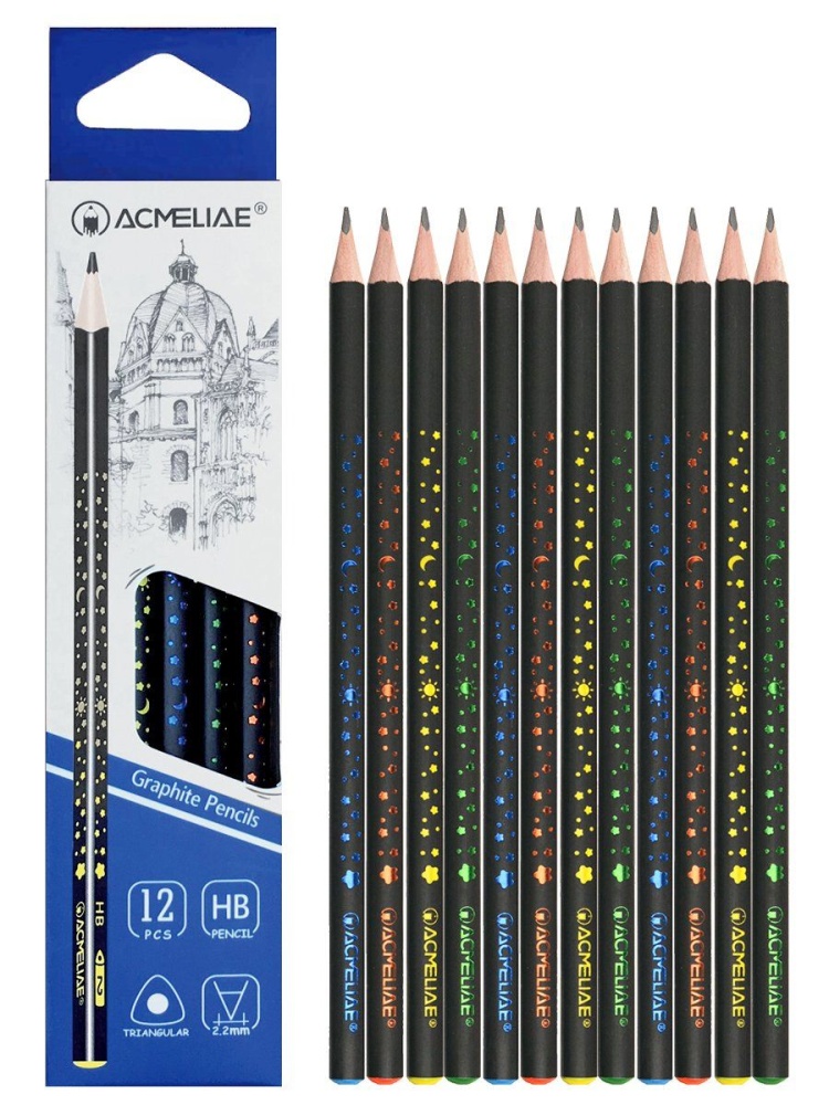 Карандаш ACMELIAE HB трехгранный, черн. корпус, с принтом