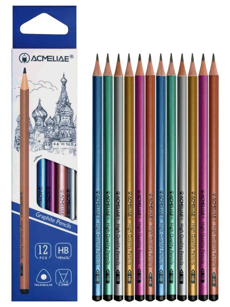 Карандаш ACMELIAE HB трехгранный, цвет. корпус, металлик