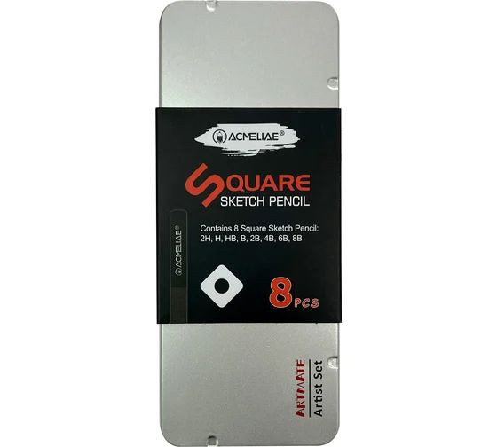 Набор карандашей ACMELIAE 8шт. (2H,H,HB,B,2B,4B,6B,8B) квадратные, метал. пенал
