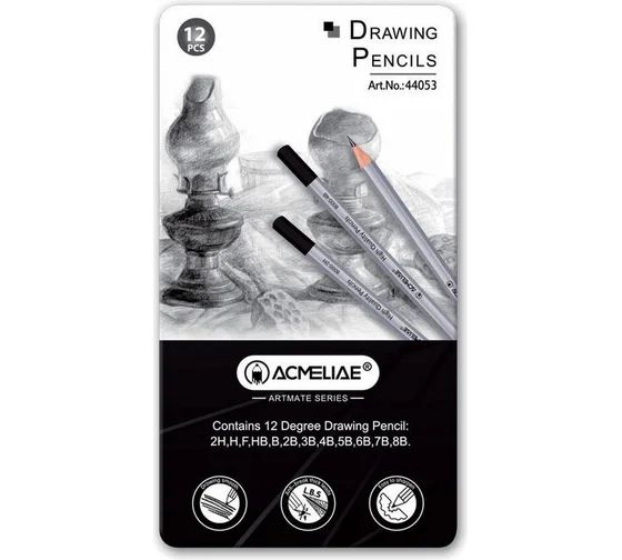 Набор карандашей ACMELIAE ArtMate 12шт. (2H,H,F,HB,B,2B,3B,4B,5B,6B,7B,8B) метал. пенал