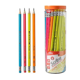 Карандаш Deli HB с ластиком, ассорти