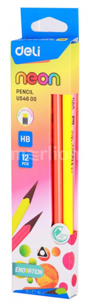 Карандаш чернографит. Deli EU54600-1 Neon HB трехгран. пластик ластик корпус коробка (1шт) Чернографитный карандаш станет незаменимым помощником в вашем творчестве процессе. Одной из главных характеристик является возможность рисовать тонкой линией, но при этом сами карандаши не твёрдые, и цвет наносится легко. А высококачественный и прочный, грифель не сломается даже при падении и ударе.