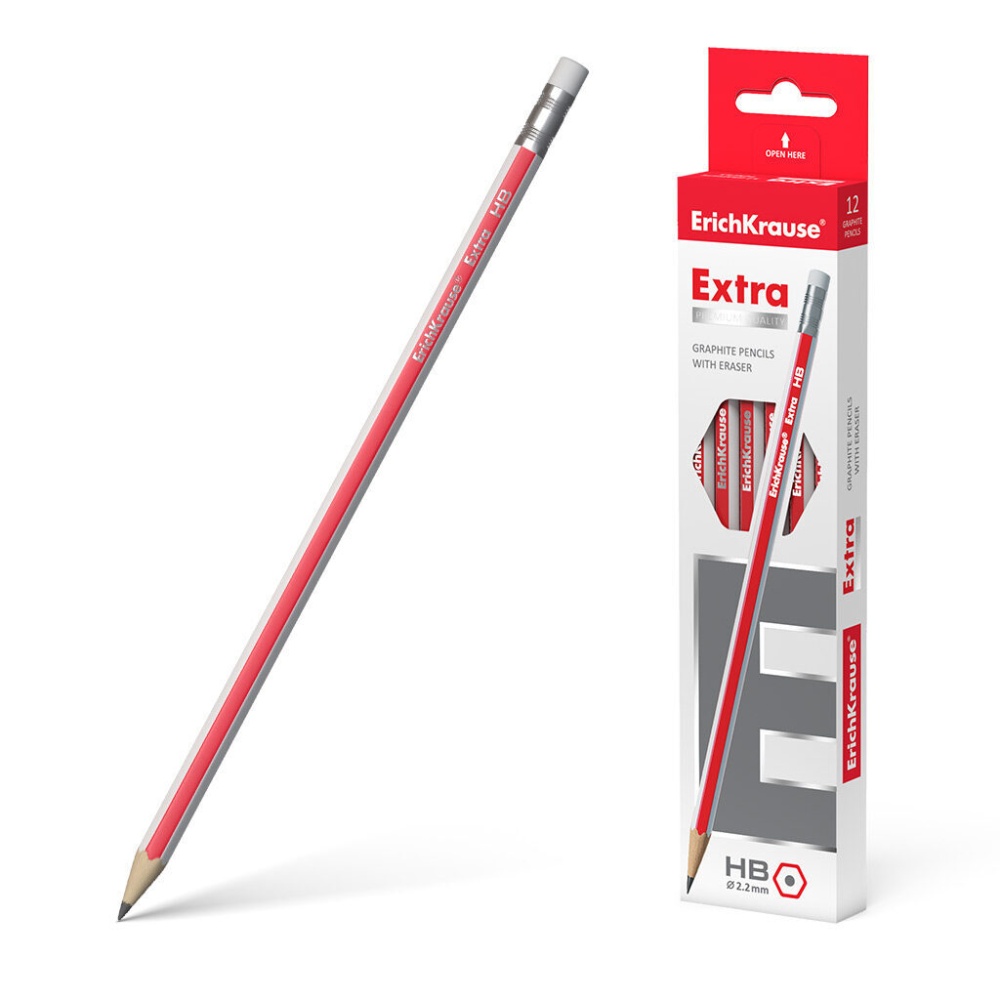 Чернографитный карандаш ErichKrause Экстра, шестигранный, с ластиком, ТМ (в коробке по 12 шт.)