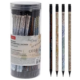 Чернографитный карандаш c рисунком и заточкой имеет круглую форму. Дополнен ластиком и является идеальным инструментом для письма, рисования и черчения. Прочный неломающийся грифель диаметром 2 мм и твердостью НВ. Упаковка: пластиковая туба на 72 штуки.