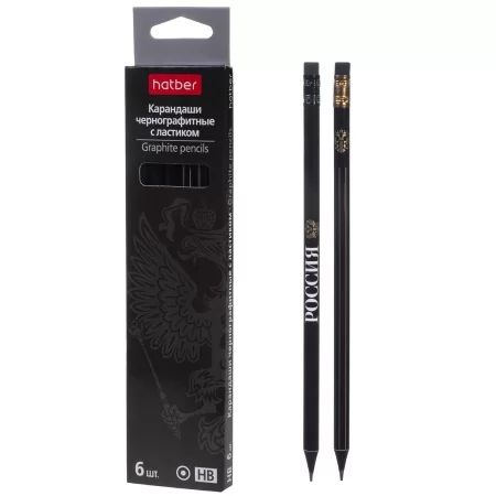Набор карандашей ч/гр 6шт. "Символы России" НВ с ластиком, дерево