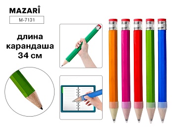 Карандаш Гигант деревянный, с ластиком HB, длина 34см, шестигранный корпус