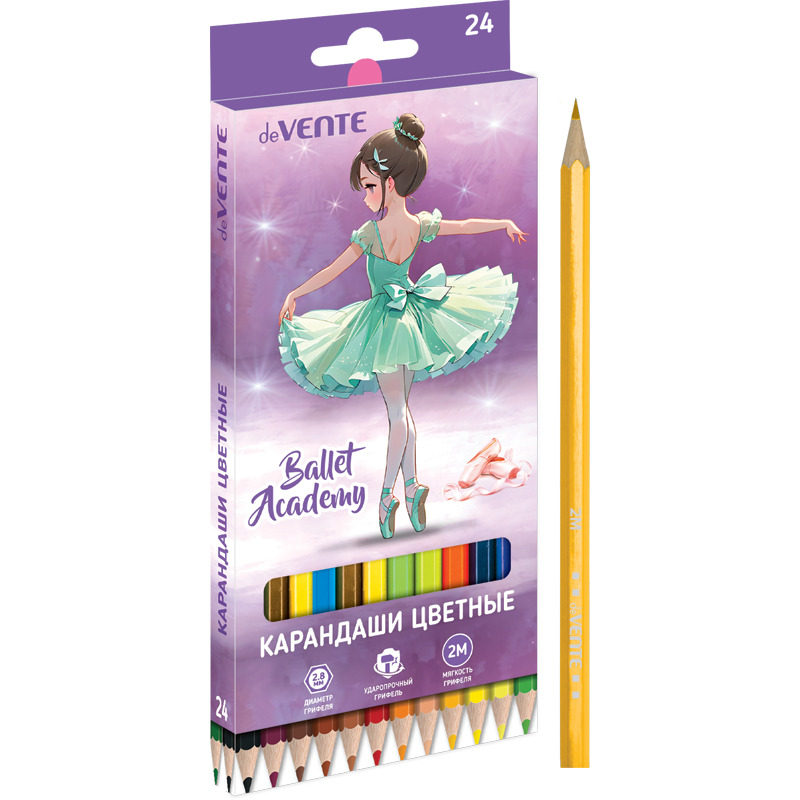 Карандаши цветные "deVENTE. Ballet Academy" 24 цвета, 2М, диаметр грифеля 2,8 мм, шестигранные, в картонной коробке