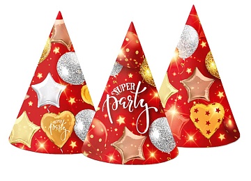 Колпак карнавальный "Супер пати" красный 16см, 10 шт/уп