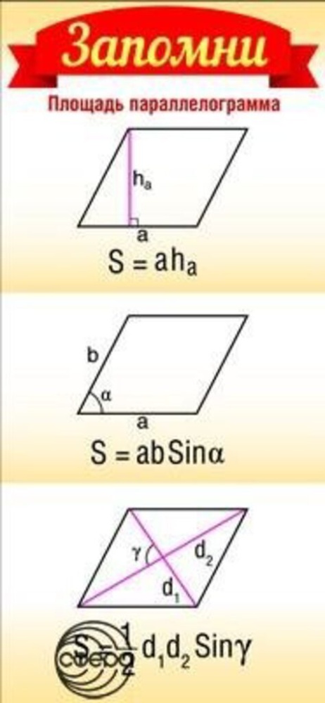 Карточка-шпаргалка 130*60мм "Запомни! Площадь параллелограмма"
