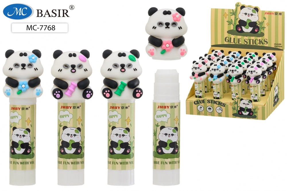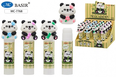 Клей-карандаш: детский "ПАНДА"; цветной пластиковый корпус с выдвигающимся стержнем, прорезиненный колпачок в виде фигурки-панда, 9гр.