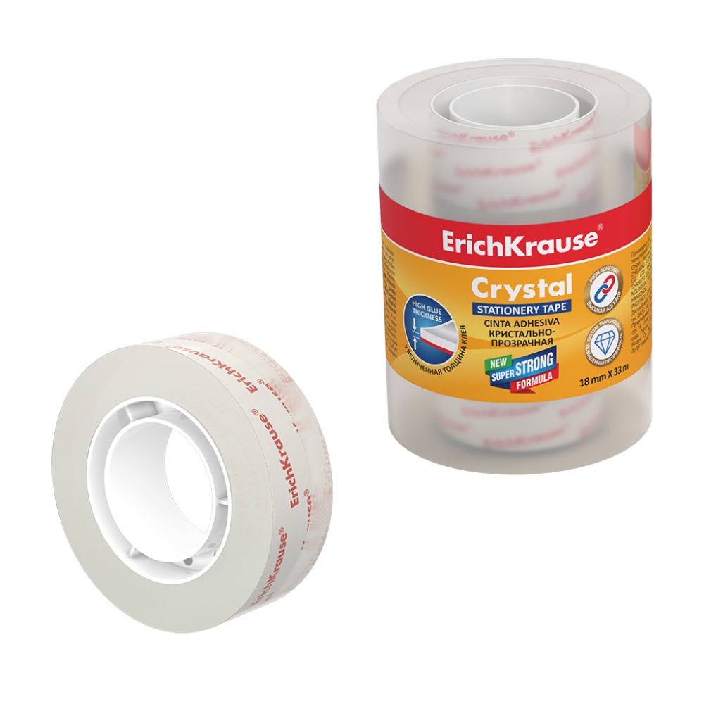 Клейкая лента ErichKrause Кристально прозрачная, 18ммх33м, повышенная прозрачность (в пленке по 4 шт