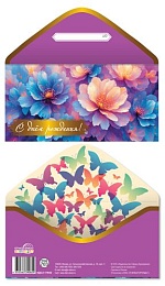 Конверт для денег, украшенный отделкой из золотой фольги, поможет красиво оформить подарок другу или подруге, коллеге или близкому человеку. Конверт выполнен из плотного картона, поэтому надолго сохранит свой нарядный внешний вид.