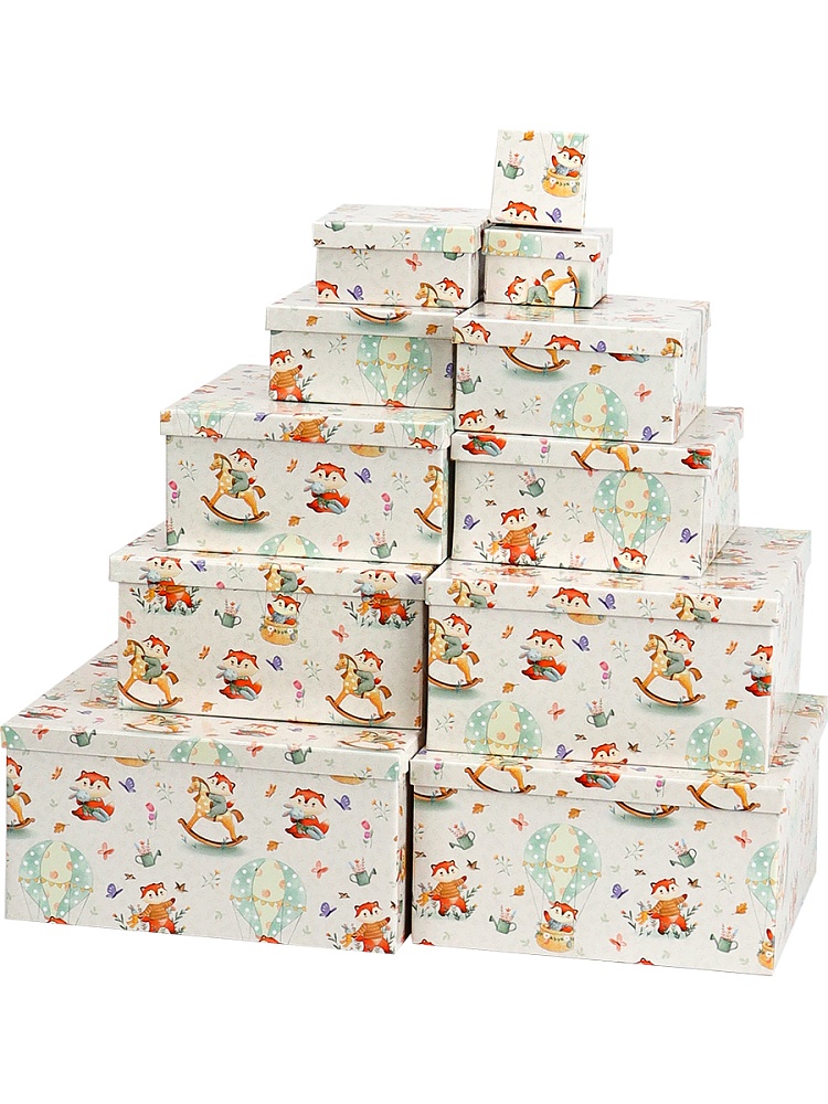 Набор подарочных коробок 11в1 "Милые лисята" 25,5*25,5*13 - 5,5*5,5*2,5 см