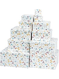 Набор коробок поможет создать яркие и запоминающиеся подарки, которые приятно дарить и получать. Лёгкие и прочные коробки защитят содержимое от повреждений и сохранят аккуратный внешний вид в течение длительного времени, что позволит использовать их ещё и дома для хранения полезных мелочей. Размеры коробок в наборе: 25,5х25,5х13 - 5,5х5,5х2,5 см. Собственная разработка.