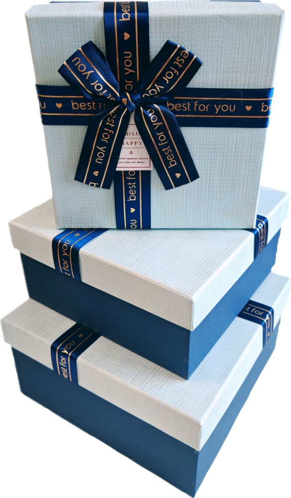 Набор подарочных коробок 3в1 с бантом, голубой/золото 15*15*6.5, 17*17*8, 19*19*9.5см