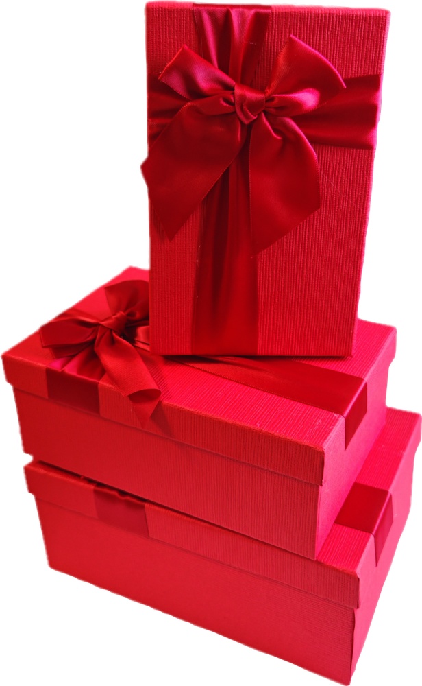 Набор подарочных коробок 3в1 с бантом, красный 19*12*6.5, 21*14*8, 23*16*9.8см
