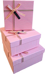 Набор подарочных коробок 3в1 с бантом, розовый 15*15*6.5, 17*17*8, 19*19*9.5см