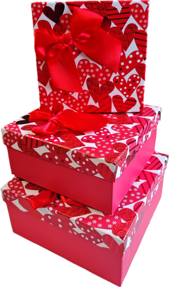 Набор подарочных коробок 3в1 с бантом "Сердечки" 15*15*6.5, 17*17*8, 19*19*9.5см