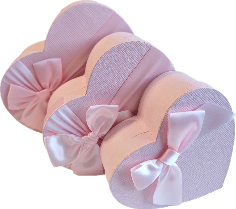 Набор подарочных коробок 3в1 "Сердце" с бантом, розовый 16*14*6, 19*17*7.5, 22*20*9см