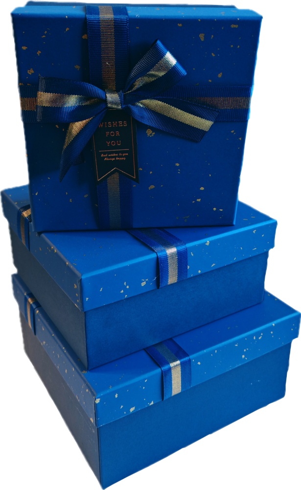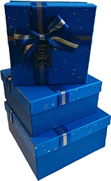 Набор подарочных коробок 3в1 с бантом, синий 15*15*6.5, 17*17*8, 19*19*9.5см