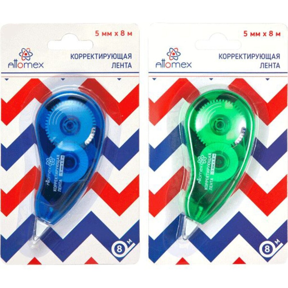 Корректирующая лента "Attomex" 5 ммx08 м, регулировка натяжения ленты, прозрачный корпус ассорти, фронтальный аппликатор, в картонном блистере