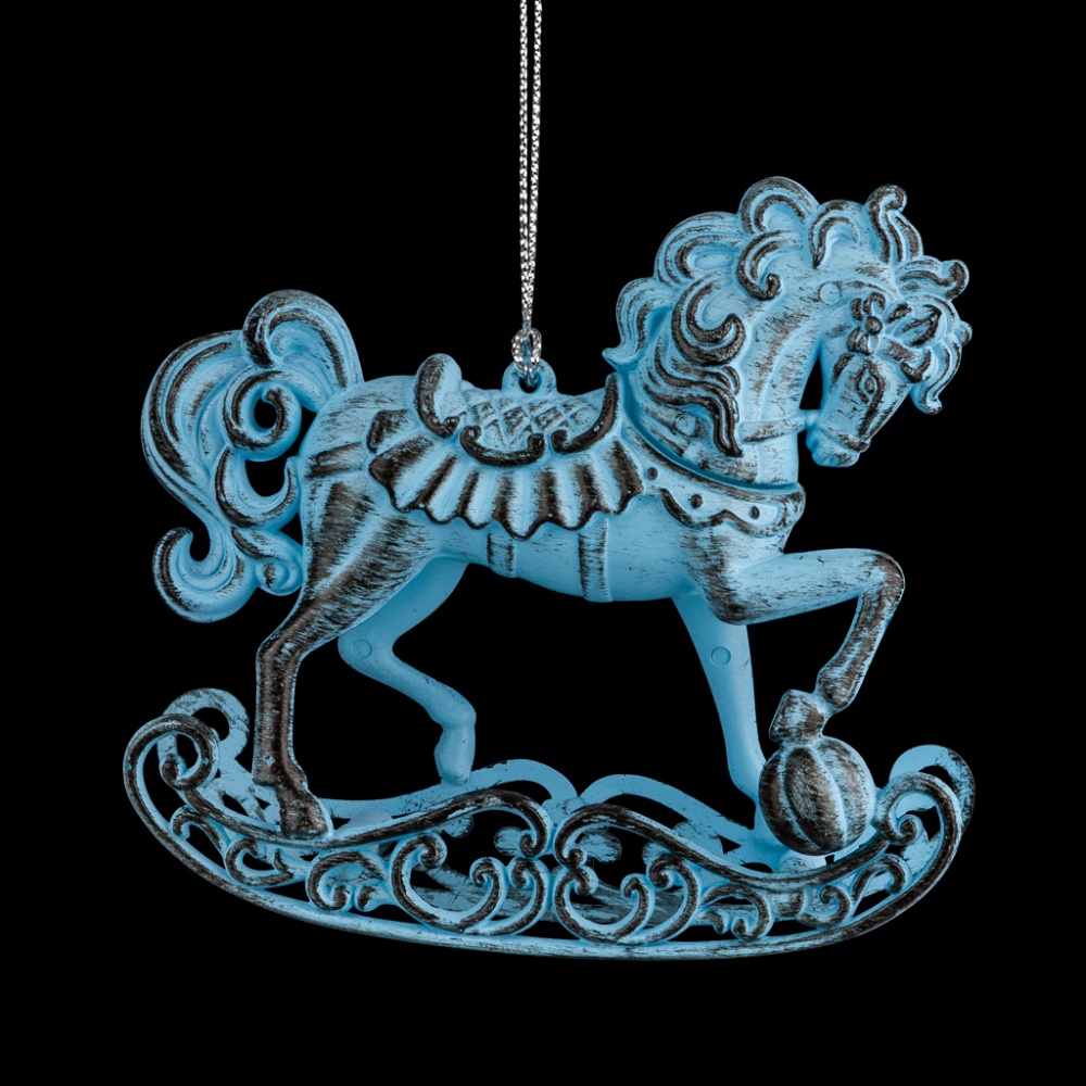 Лошадка-качалка - отличный выбор для любителей винтажных вещей. Выполненная в нежном голубом цвете с матовым покрытием, она излучает тепло и уют. Напыление темной краски добавляет украшению эффект состаренности. Изделие отличается ярко выраженным рельефом, подчеркивающим каждую деталь. Великолепно смотрится на елке и в качестве сувенира. Техническая упаковка - полиэтиленовый пакет, только для безопасной транспортировки и хранения.