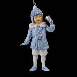 Мальчик с колокольчиком станет отличным дополнением к новогодней елке. Елочные игрушки в ретро стиле излучают особую теплоту. Украшение отличается нежным голубым цветом с серебряными акцентами. Прозрачные блестки создают эффект хлопьев снега. Детали тонко прорисованы. Изделие является относительно тяжелым, предпочтительно использование на искусственной елке. Групповая упаковка предназначена только для безопасной транспортировки и хранения.