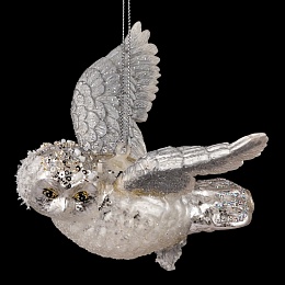 Волшебная сова выполнена из стекла высокого качества. Украшение покрыто сверкающими красками с матовым финишем. Крылья и лапки сделаны из полирезины, что позволяет максимально точно передать детализацию птицы. Голова декорирована блестящим бисером и пайетками, что добавляет эксклюзивность образу. На дне изделия есть технологическое отверстие, связанное с процессом производства, при котором стеклянная игрушка выдувалась вручную. Групповая упаковка предназначена только для безопасной транспортировки и хранения.