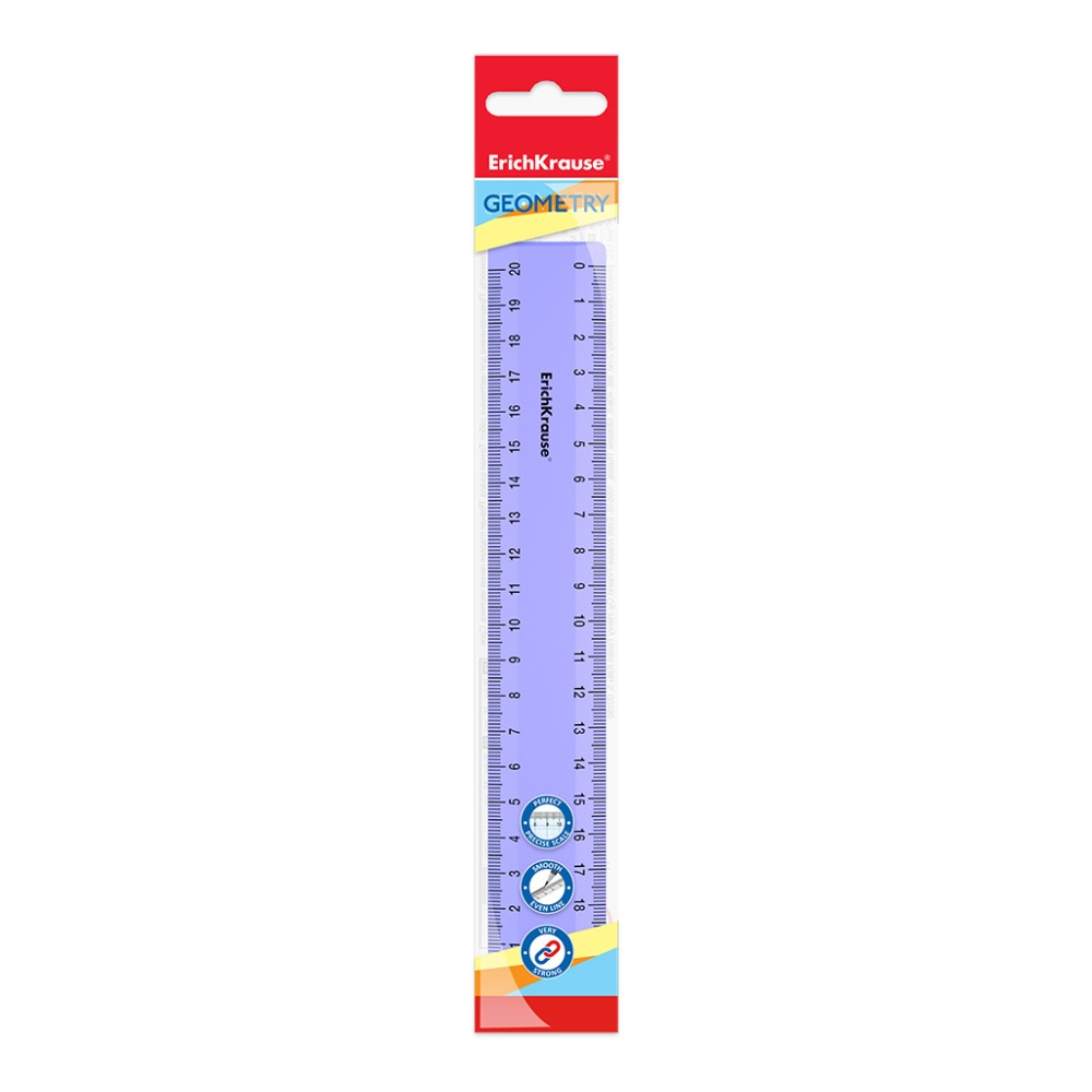 Непрозрачная линейка из высококачественного пластика. Четкая печать двухсторонней шкалы. Длина разметки  20см.