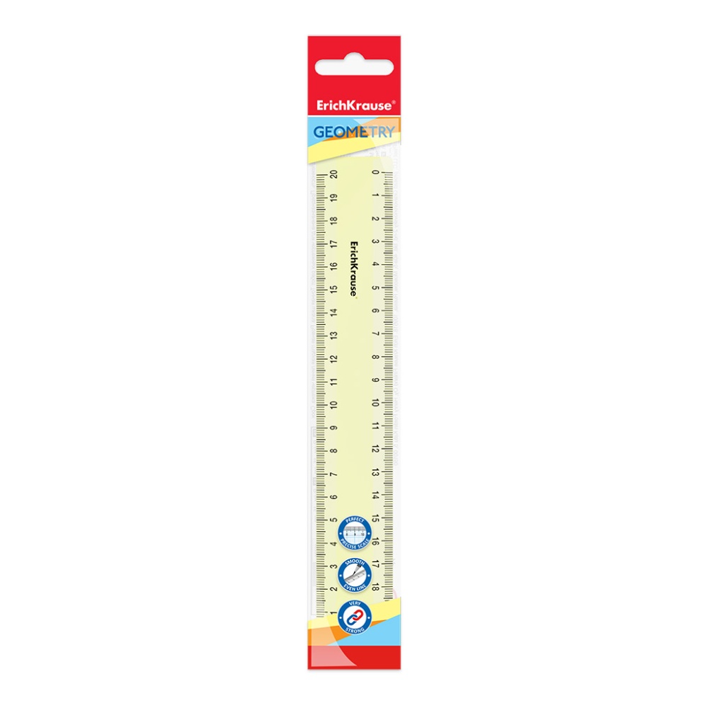 Линейка пластиковая ErichKrause Pastel, 20см, желтая, во флоупаке