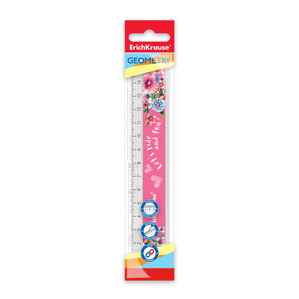 Линейка с выемкой пластиковая ErichKrause Flower Scooter, 15см, во флоупаке