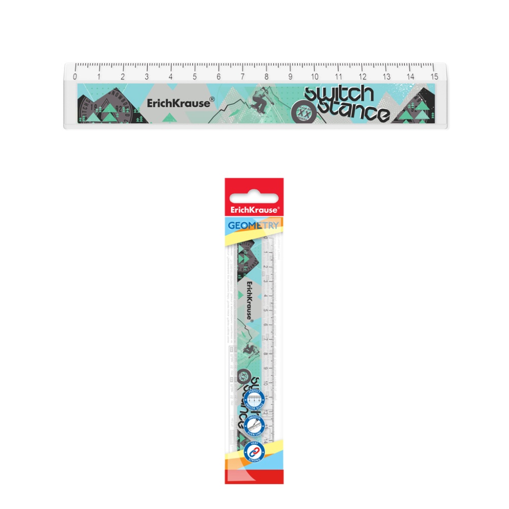 Линейка с выемкой пластиковая ErichKrause Snow Freedom, 15см, во флоупаке