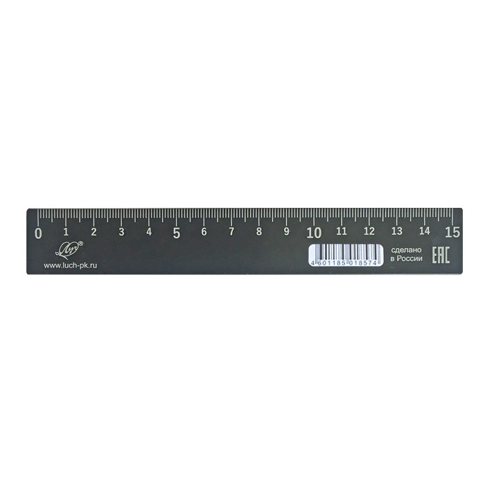 Линейка 15 см, непрозрачная, черная